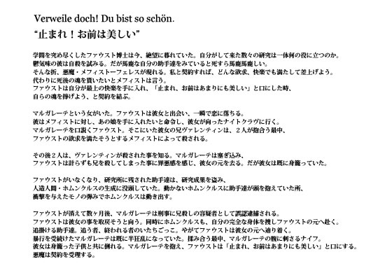 ファウストをモチーフにイメージを拡げ、悪魔と契約した男が辿る