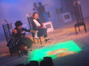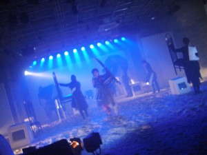 砂や水、生楽器など様々なパフォーマンスをおこなった。